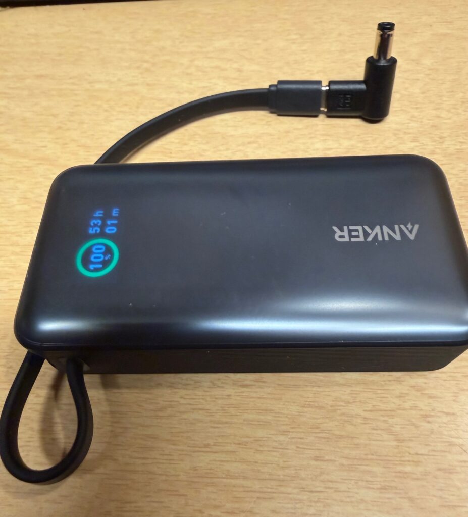 One word of warning: Plugging the USB-C to 5.5mm adapter onto the power bank will keep the power bank turned on. So be sure to remove the USB-C cable from the adapter to avoid discharging your battery (According to the Anker display it will drain the battery after 53 hours)