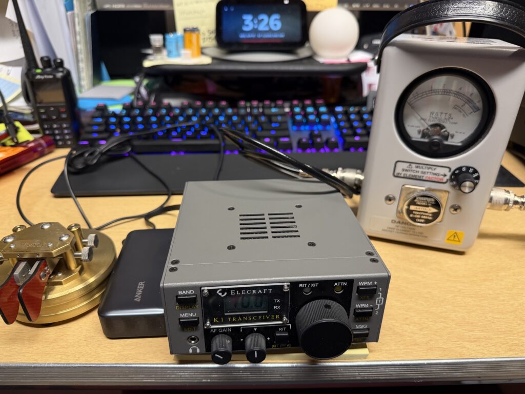 My success with the KX3 activation a few days ago made me dust off an Elecraft K1 transceiver that I built a decade ago as a kit. The K1 is a 5 watt CW QRP transceiver, and came in a 4-band or 2-band version. By the time I was making my K1, they had run out of 4-band options, so I made mine for 30m and 20m. I also made the internal antenna tuner.